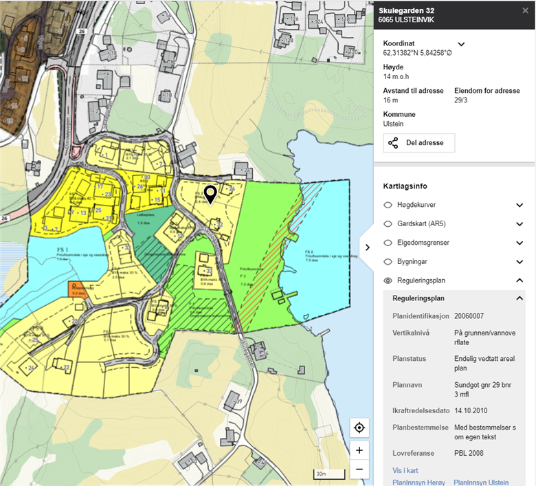 Under "hamburgermenyen" får du tilgang til å måle avstandar og areal, du kan teikne enkle illustrasjonar, skrive ut (via pdf-fil), du får opp teiknforklaring m.m.